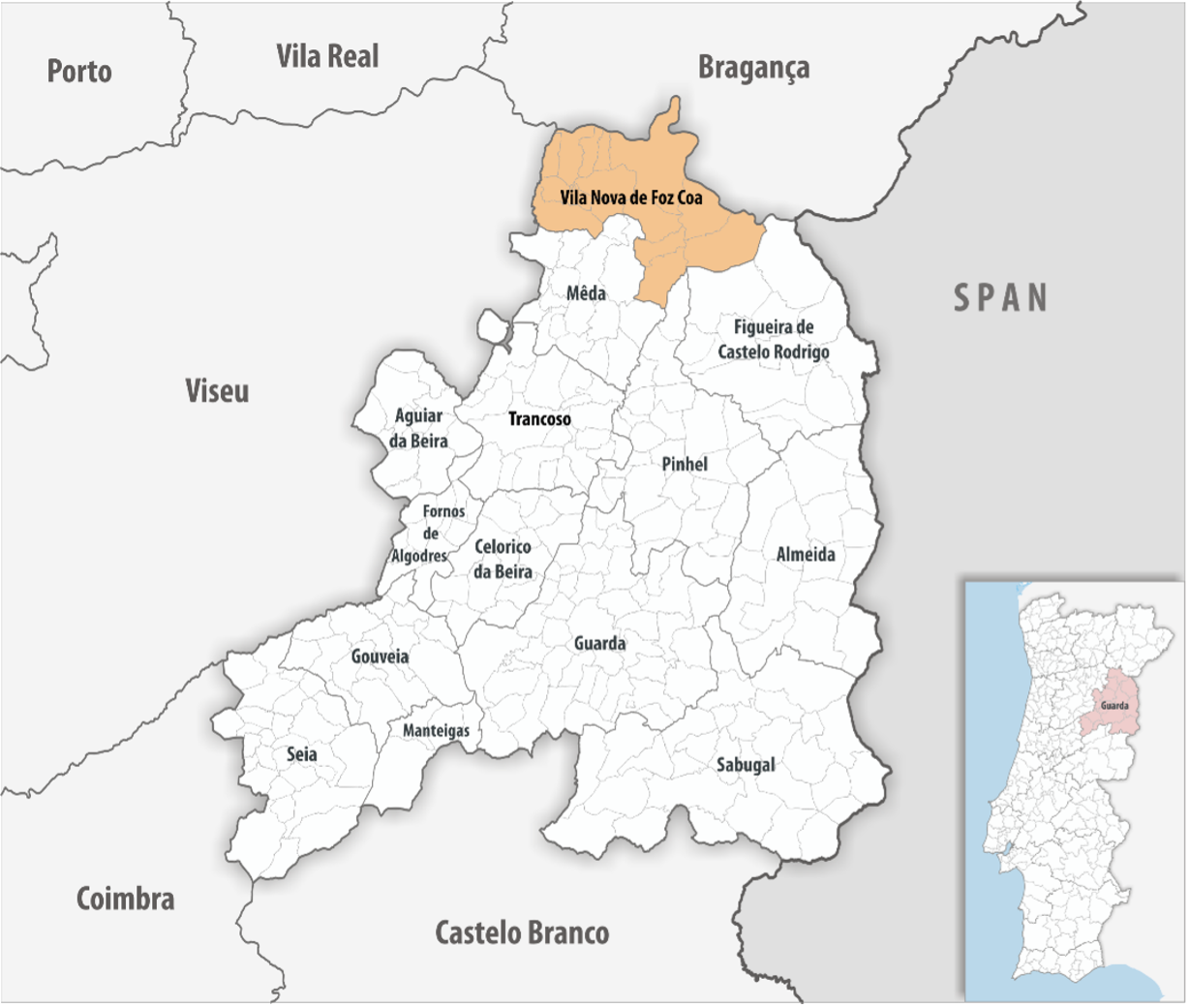 O concelho de Vila Nova de Foz Côa é delimitado a norte pelo rio Douro, sendo todo o leito do rio navegável.