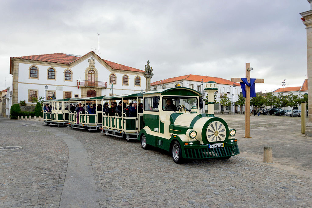 Ao longo de uma hora é possível descobrir os principais pontos de interesse turístico da cidade, como a Igreja Matriz, dedicada a Nossa Senhora do Pranto, e o Pelourinho, ambos Monumentos Nacionais do séc. XVI. O seu percurso inclui ainda uma passagem pelo Largo do Tablado, que em setembro é local de reunião dos agricultores para a bolsa da amêndoa, no qual é fixado o preço de referência da mesma, e pelo Largo da Conceição, onde antigamente se produziam as cordas.